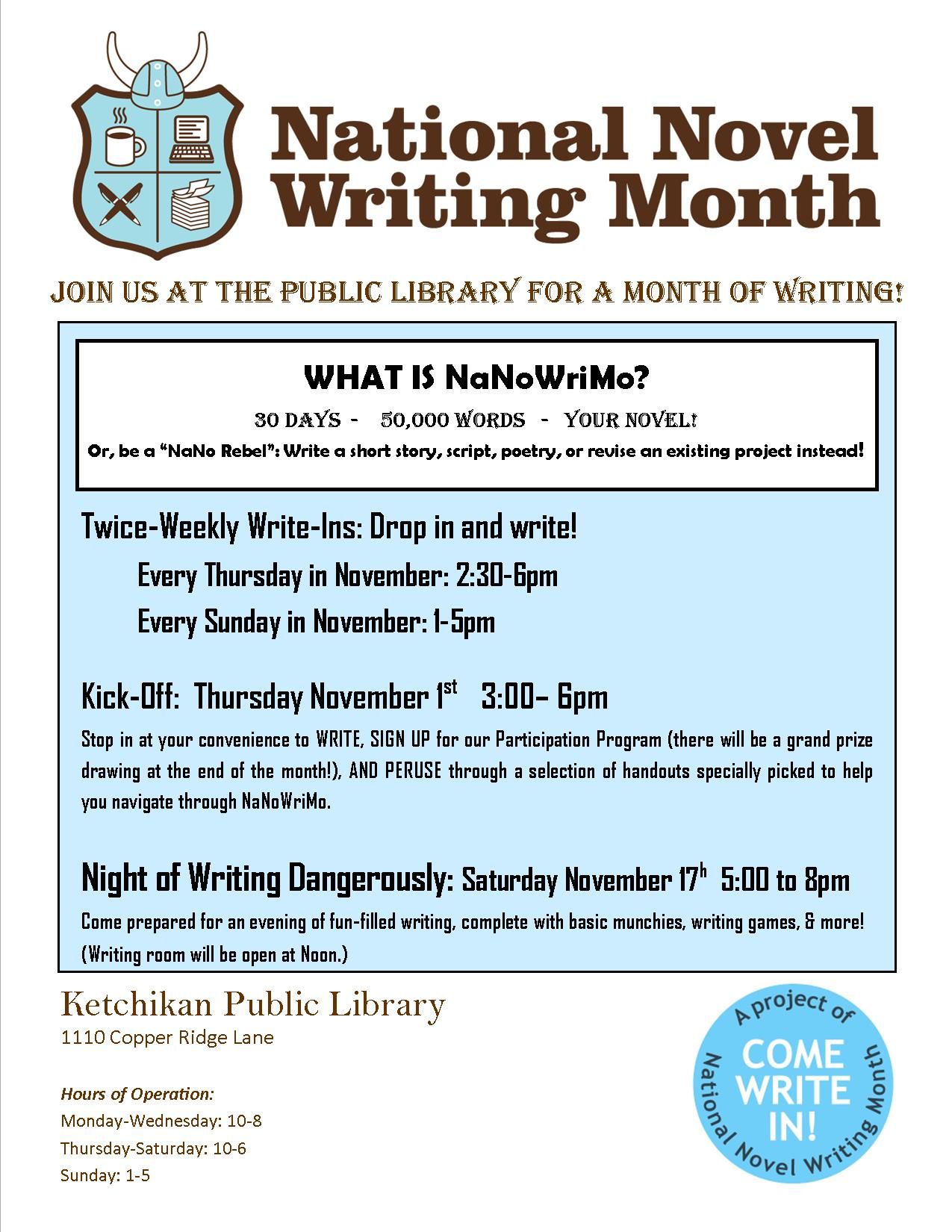 National Novel Writing Month (NaNoWriMo) at the Ketchikan Public Library!