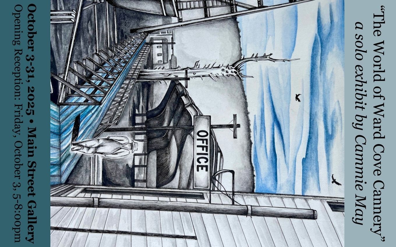 PLUS come to the Gallery on Saturday, October 4th at 11am for Cammie's Artist Presentation. Cammie will give a brief history of the Ward Cove Cannery with historic photos and will share her approach to creating the works in her exhibit.