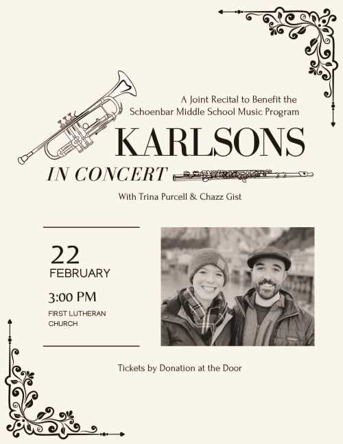 Admission is by donation. All proceeds benefit the music program at the Schoenbar Middle School!