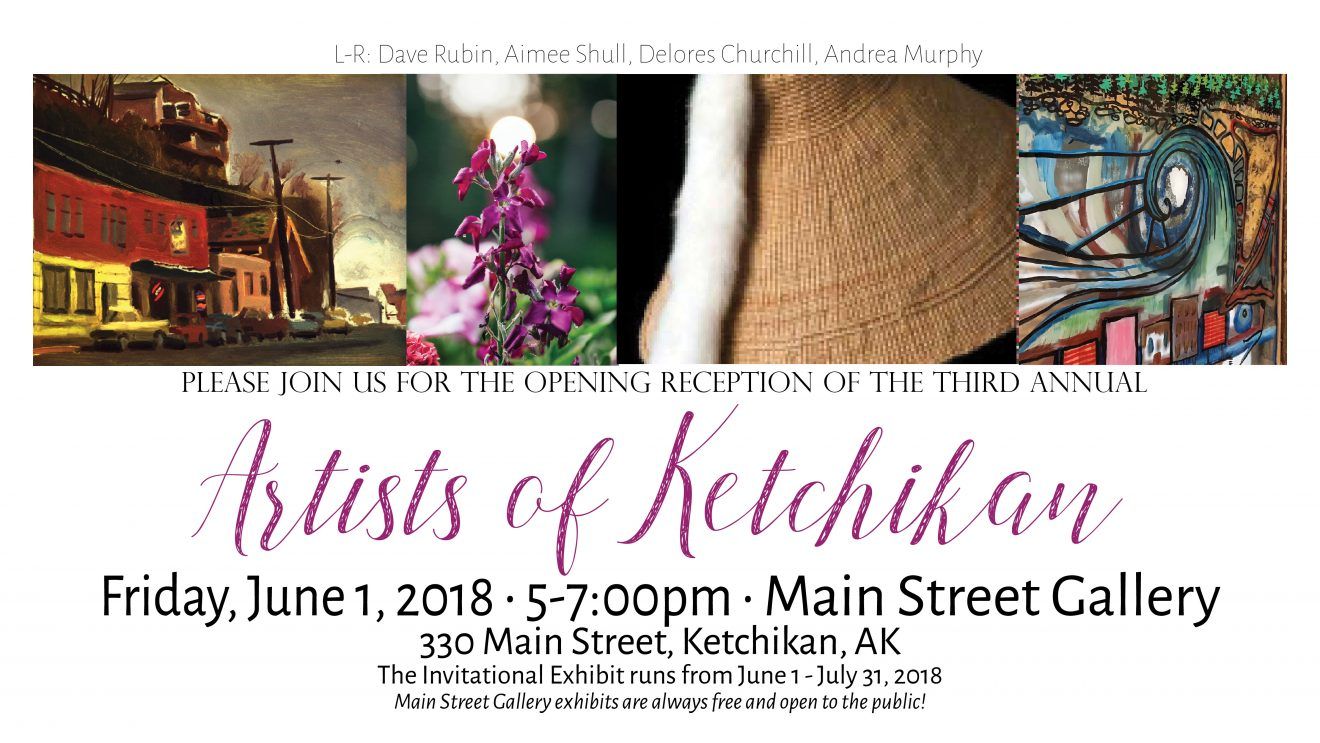 The Ketchikan Area Arts and Humanities Council and the Main Street Gallery Committee set aside the months of June and July for the annual Artists of Ketchikan Invitational Exhibit. This exhibit at the Main Street Gallery offers an introduction for our summertime visitors to the amazing and varied artists of our community!