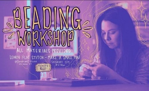 Flat stitch beading workshop teaching how to make an exquisite small pin.