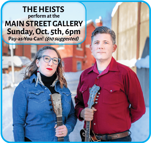 With a deep love for all American traditional music, The Heists bring bluegrass drive, country emotion, and old time groove to their original Alaskan folk music. Known for their toe-curling country and bluegrass harmonies, The Heists are currently co-writing their first album. Erin and Andrew Heist share songs and stories from decades of experience playing the bars and backrooms of Alaska!