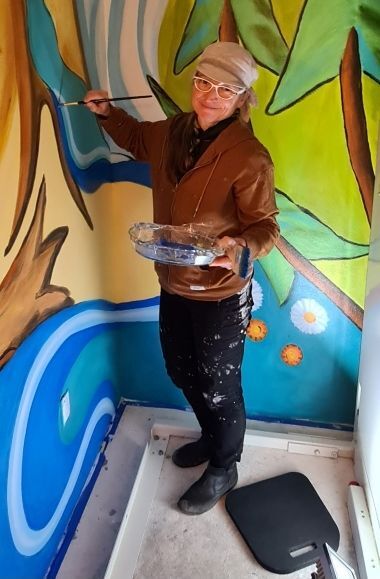 Art has always been a part of who I am, but it took many turns and life experiences to return to it fully. My second husband—an artist whose creativity inspired and supported my own—was my partner in a business creating one-of-a-kind wearable art: neckties, bowties, and scarves, sold at high-end craft shows, galleries, and museum stores. After caring for him during nearly two years of illness, I lost him to cancer. I continued our business, but grief and depression set in. In the solitude of a remote cabin surrounded by nature, I began painting on canvas—using color and form to process sorrow and rediscover joy. It was there that my identity as an artist truly began to reemerge: more grounded, more expansive, and more essential than ever.