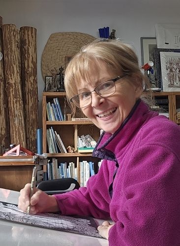 I am a pen and ink artist drawn to the quiet focus that comes from putting pen to paper. My drawings are shaped by both living and non-living forms, especially the intricate patterns found throughout the natural world. Having lived in Southeast Alaska for most of my life, I’m continuously influenced by the region’s rugged beauty and by its forests, water, wildlife, and shifting light. I have explored pen and ink drawing off and on since my youth. The stark contrast of black ink on white paper excites me—it’s where simplicity meets expression. My work is intuitive and stylized, guided more by observation and feeling than by strict realism. As each image emerges beneath my pen, I feel a growing sense of connection to the vastness of the world and the divine beauty within it. Inspiration is everywhere, and I believe there is beauty in all things. My goal is to capture that truth.