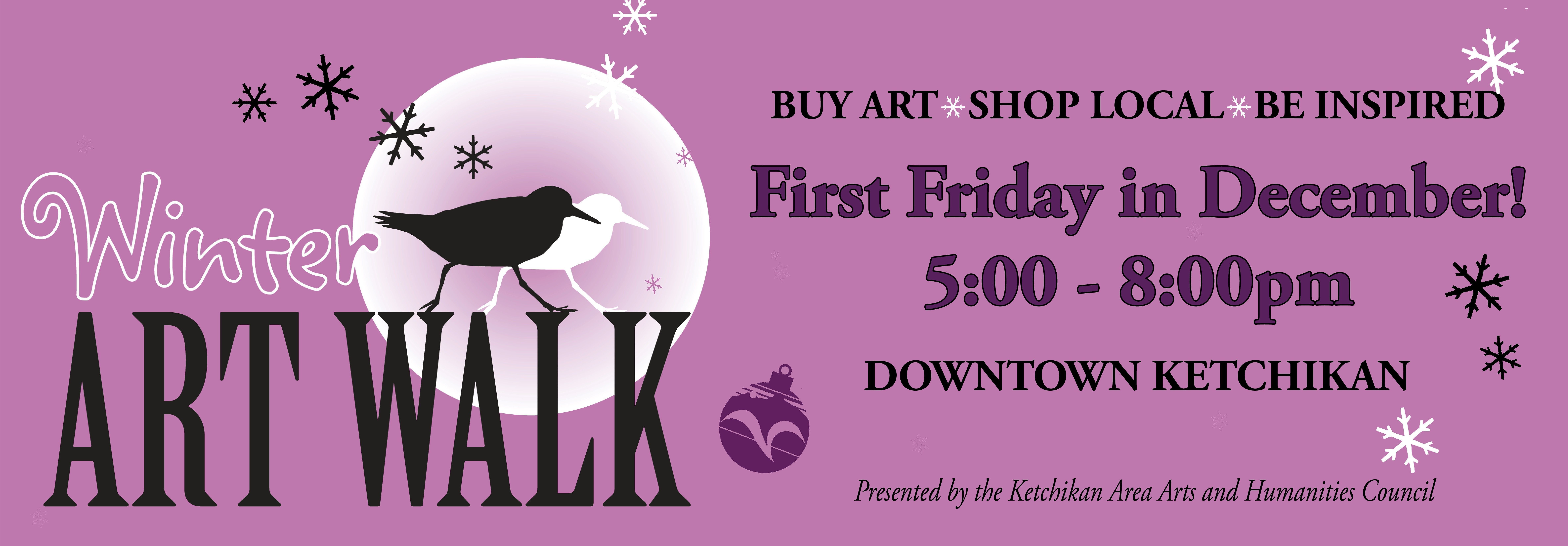Bundle up and be prepared for a blustery evening and celebrate the holiday season. Begin your evening at the Main Street Gallery for the annual "Youth in Art" exhibit featuring Ketchikan's youngest artists! Grab a map of participating businesses and begin shopping locally, supporting art, being inspired!!!
