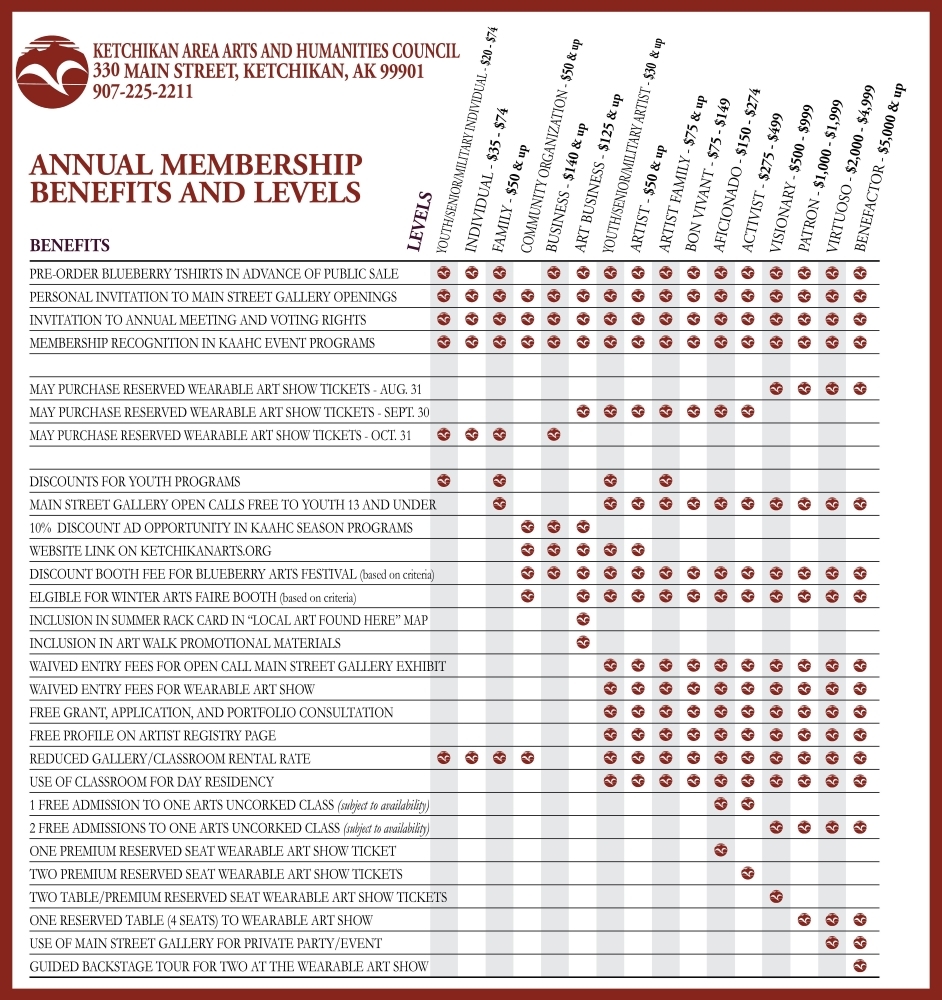 Contact us at 907.225.2211 or info@KetchikanArts.org to learn how easy (and secure) it is to become a sustaining member of the Ketchikan Area Arts & Humanities Council!